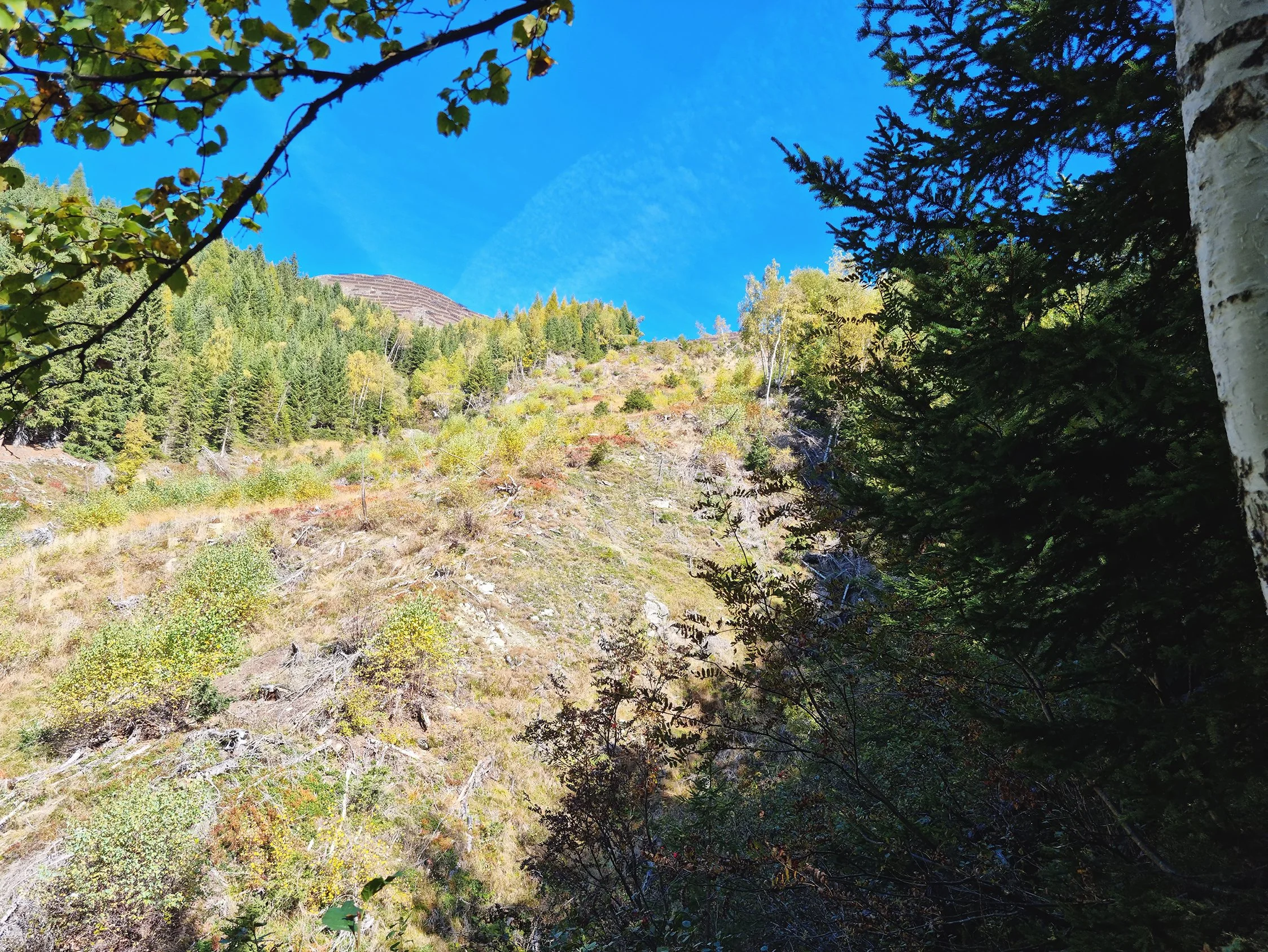 Eine Lawinenzone aus der Entfernung (Herbst 2022)