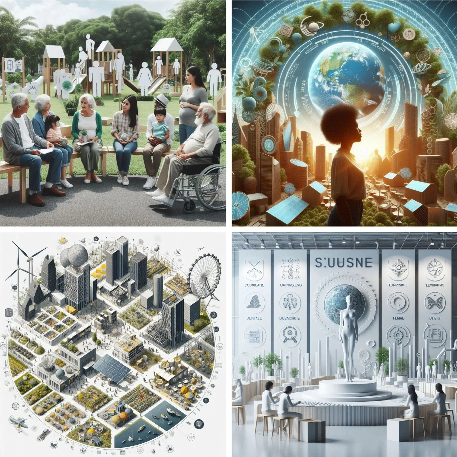 Eine ähnliche Herangehensweise führte auch mit dem Tool Microsoft Designer zu interessanten Darstellungen von „sustainable human oriented design“.
